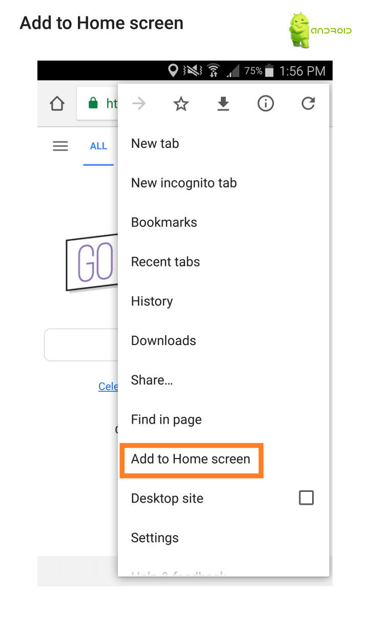 and Add to homescreen.
